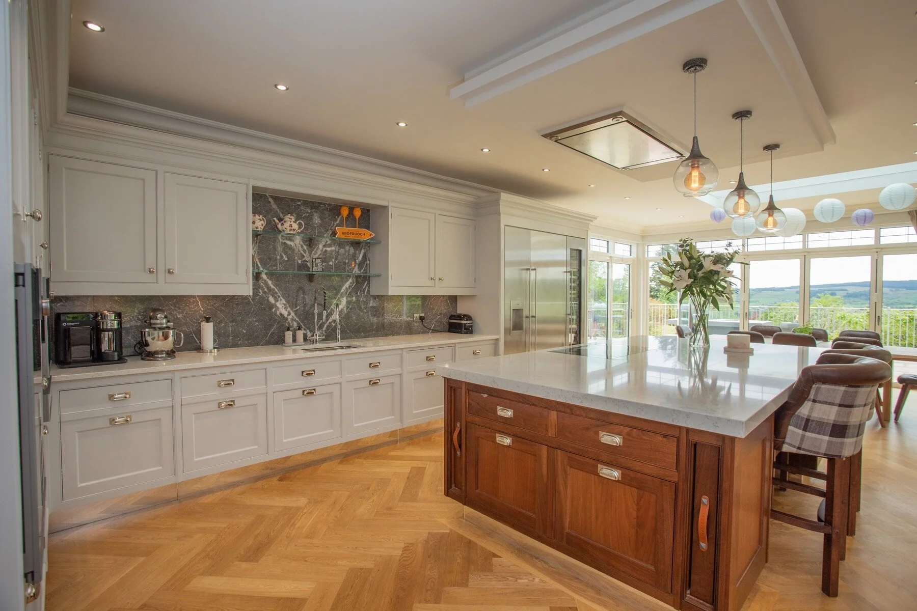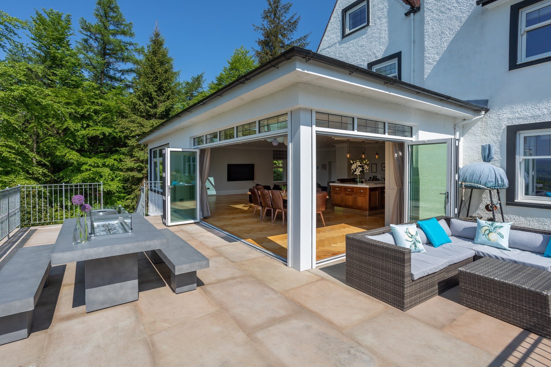 Our client was looking for a large open plan family living and kitchen space with a large external terrace to take full advantage of the south facing garden and open aspects over Kilmacolm.